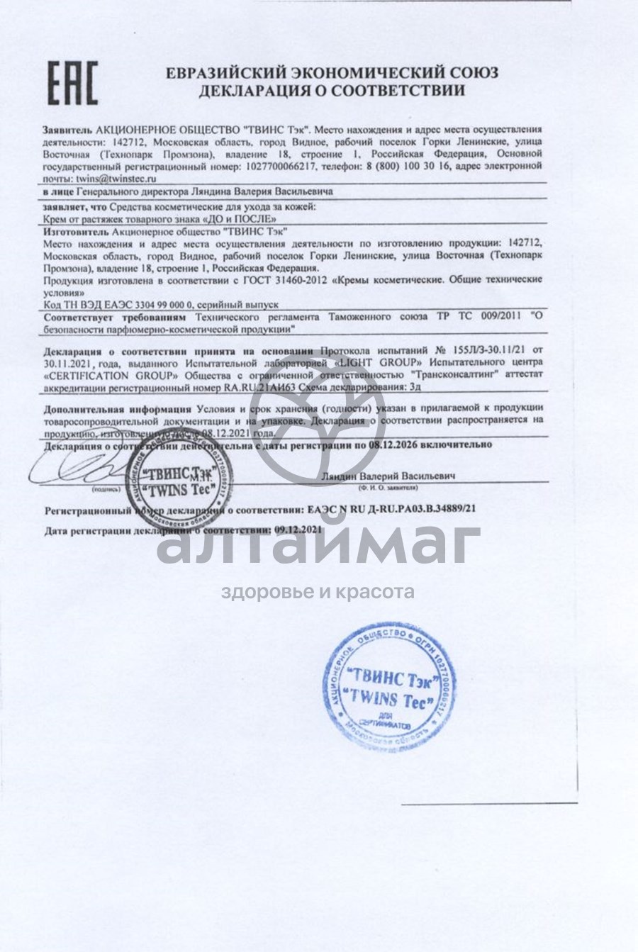 - В карточке товара находится: описание, инструкция по применению, отзывы и сертификаты.