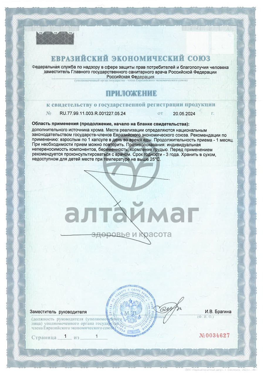 антислеживающий агент микрокристаллическая целлюлоза, хрома пиколинат, капсула (желатин)Способ применения