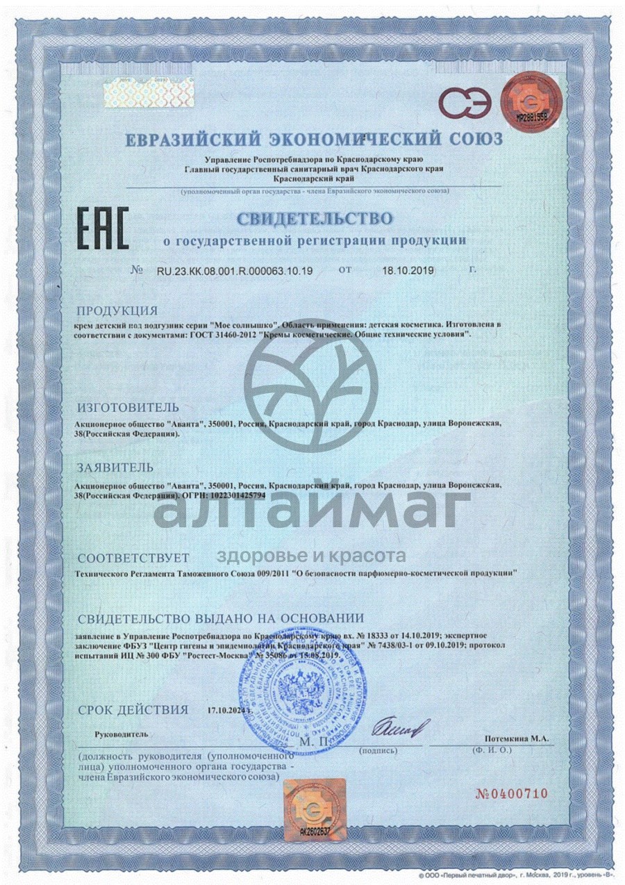 Есть вопросы по товару "Мое Солнышко крем под подгузник 100мл"?